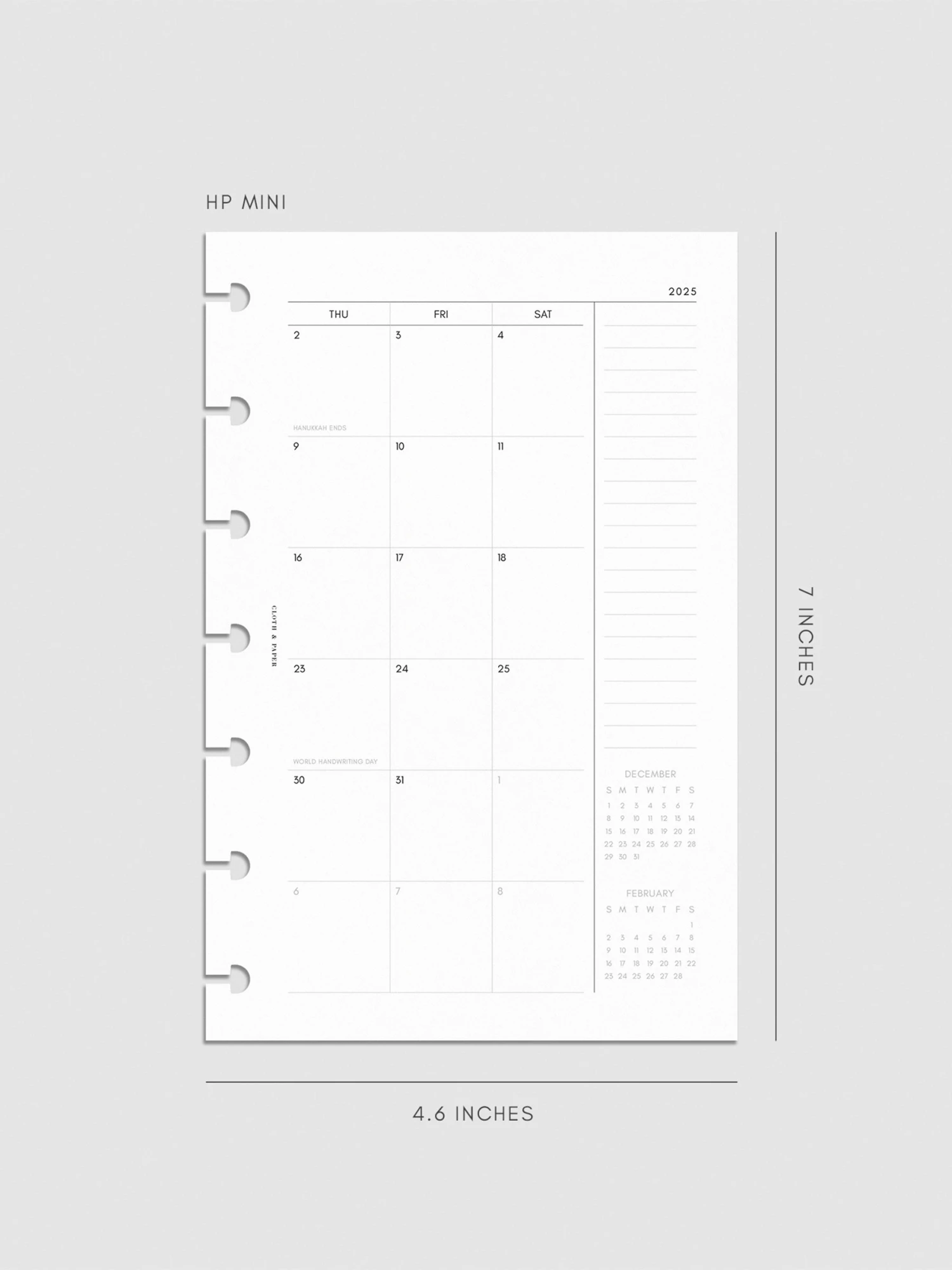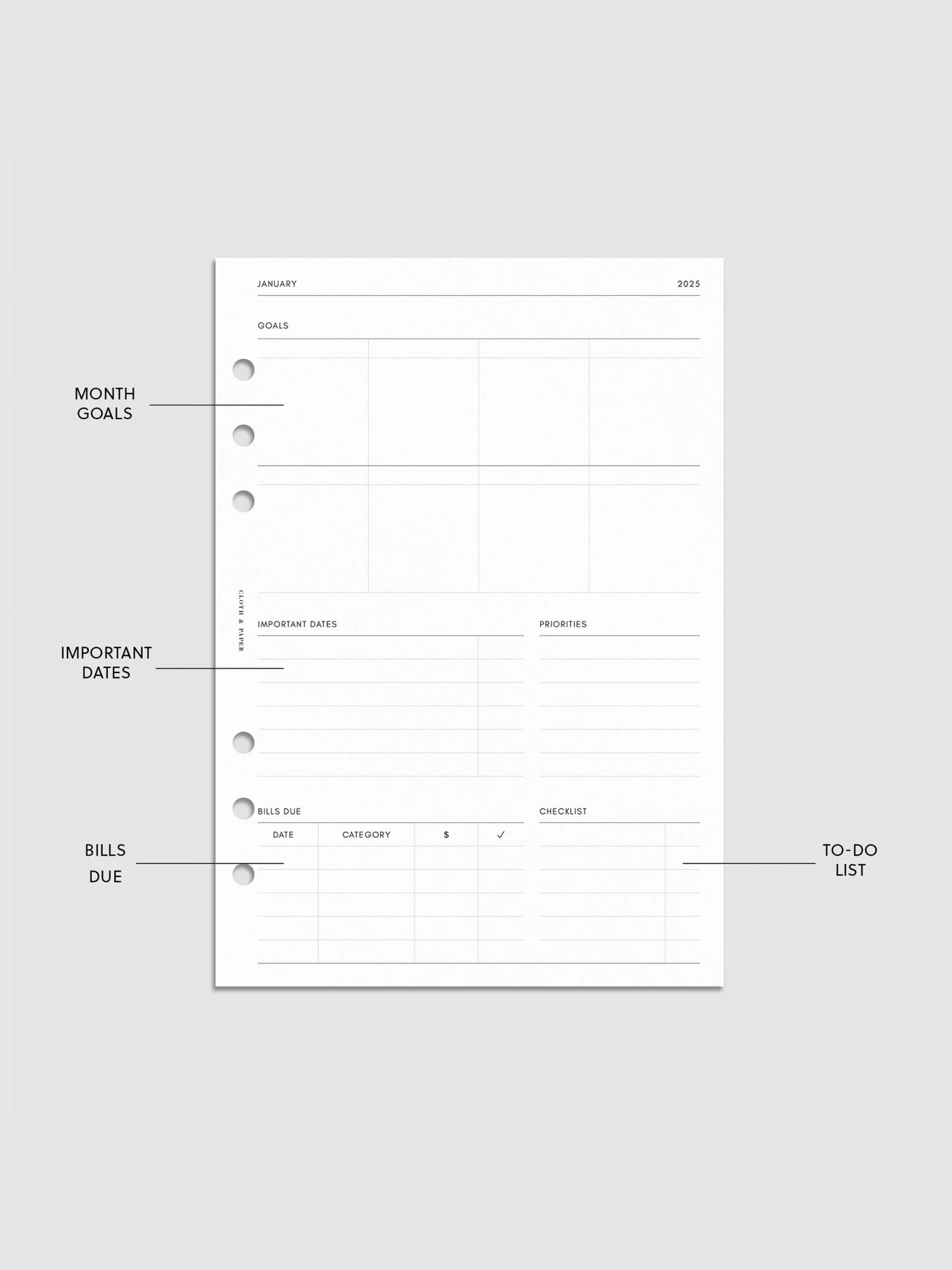 Listing is for 2025 Dated Monthly Planner Insert | Sunday Start only.