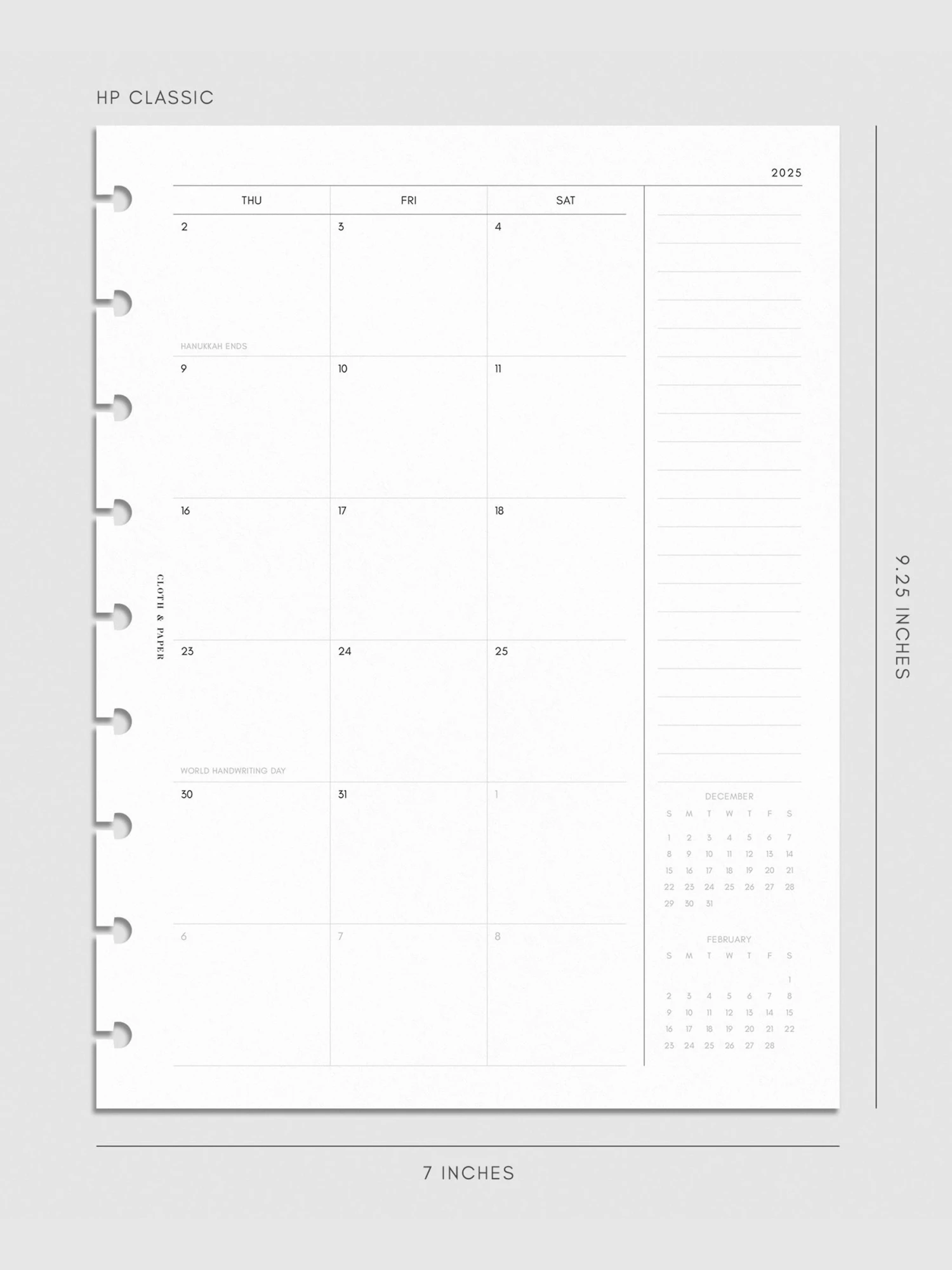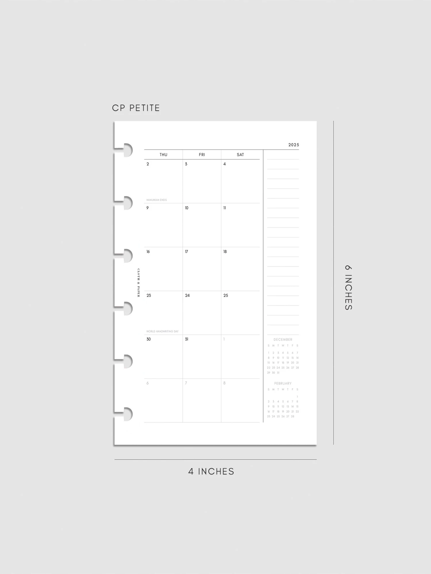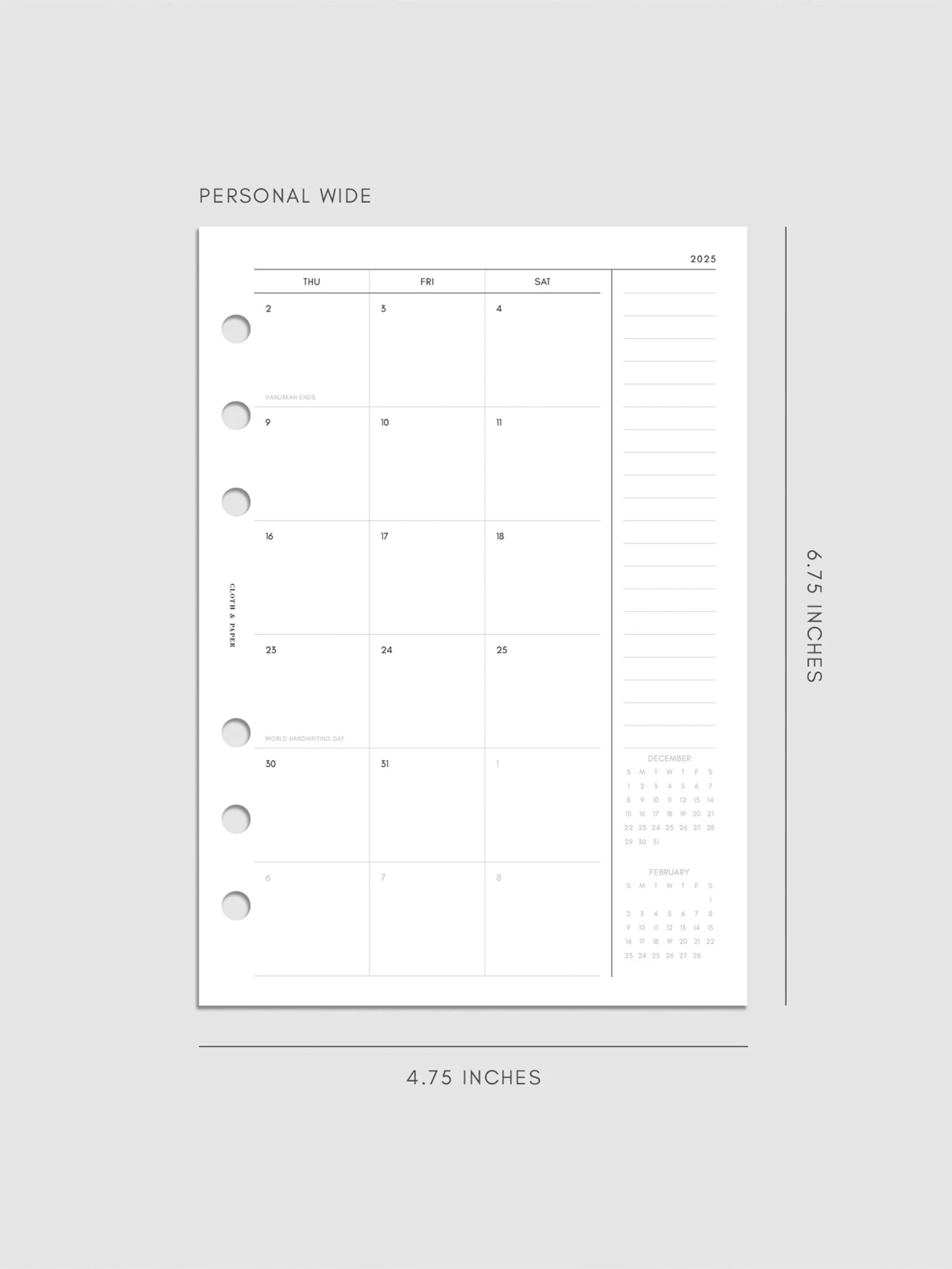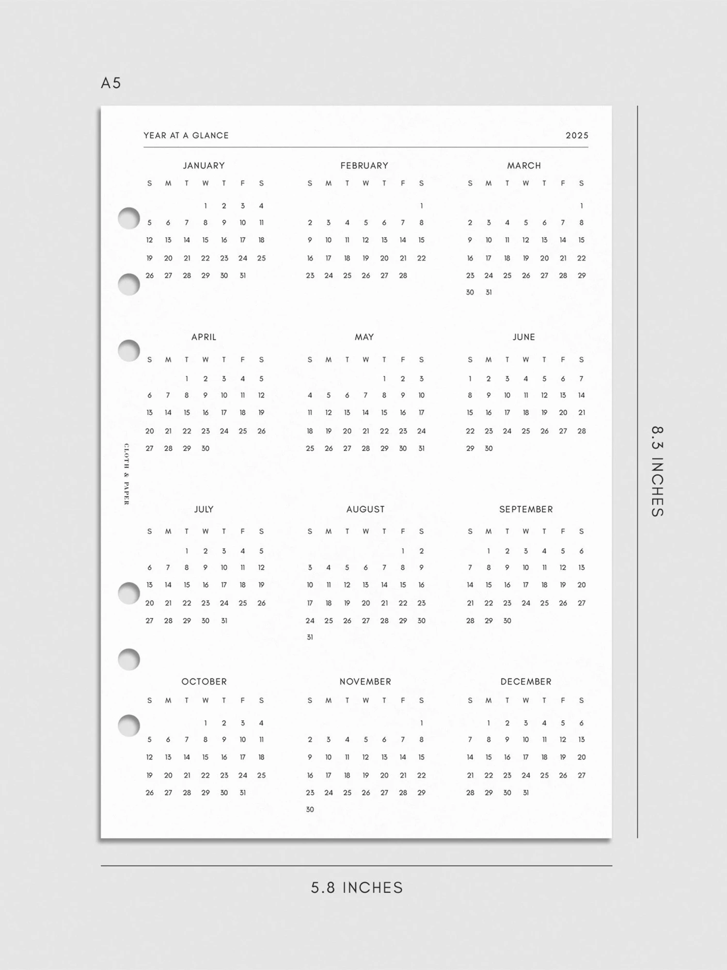 Given the abundance of pages in our dated inserts, not all systems will accommodate the entire year’s worth of inserts at one time. We recommend keeping three to six months’ worth of inserts in your planner at a time, depending on your planner cover.