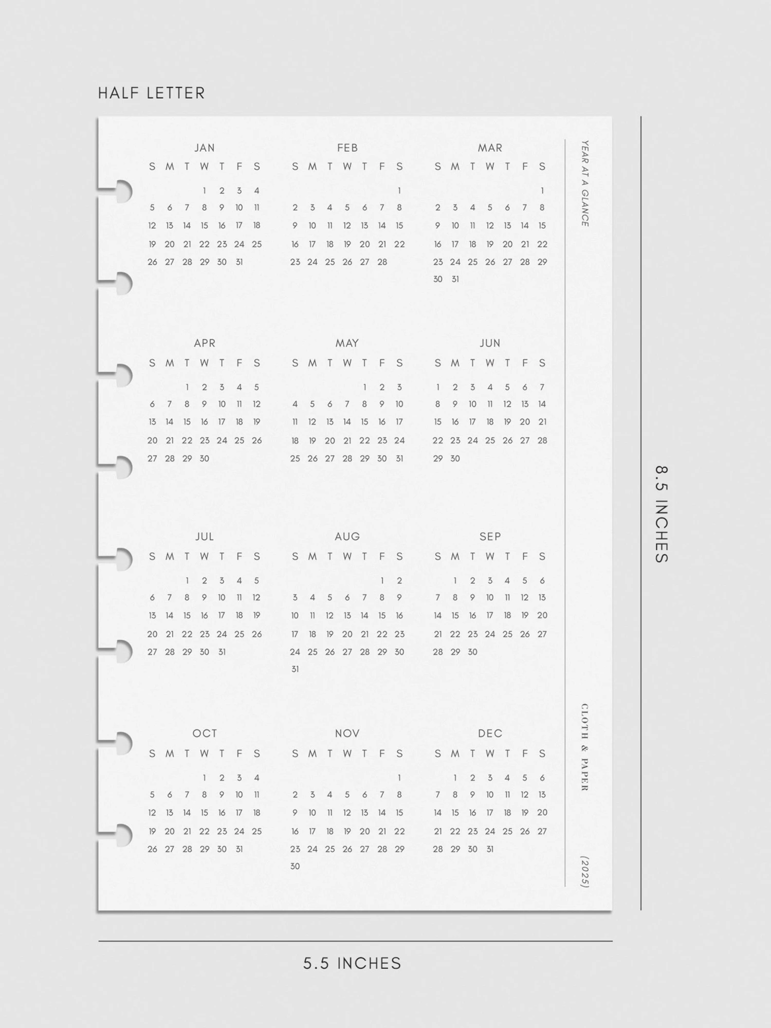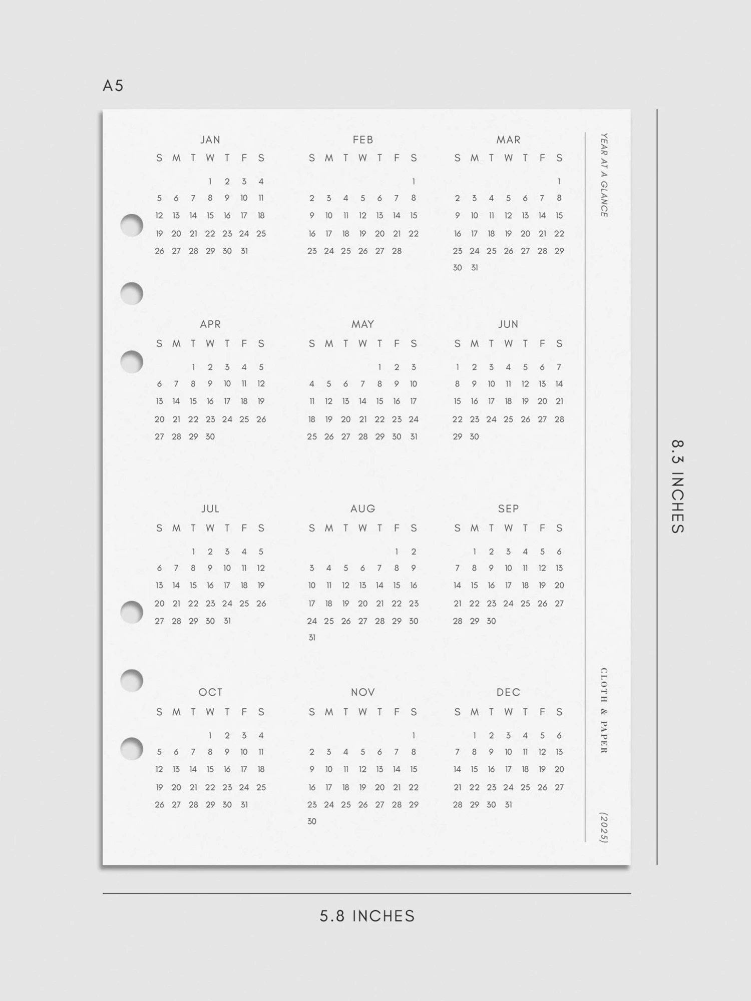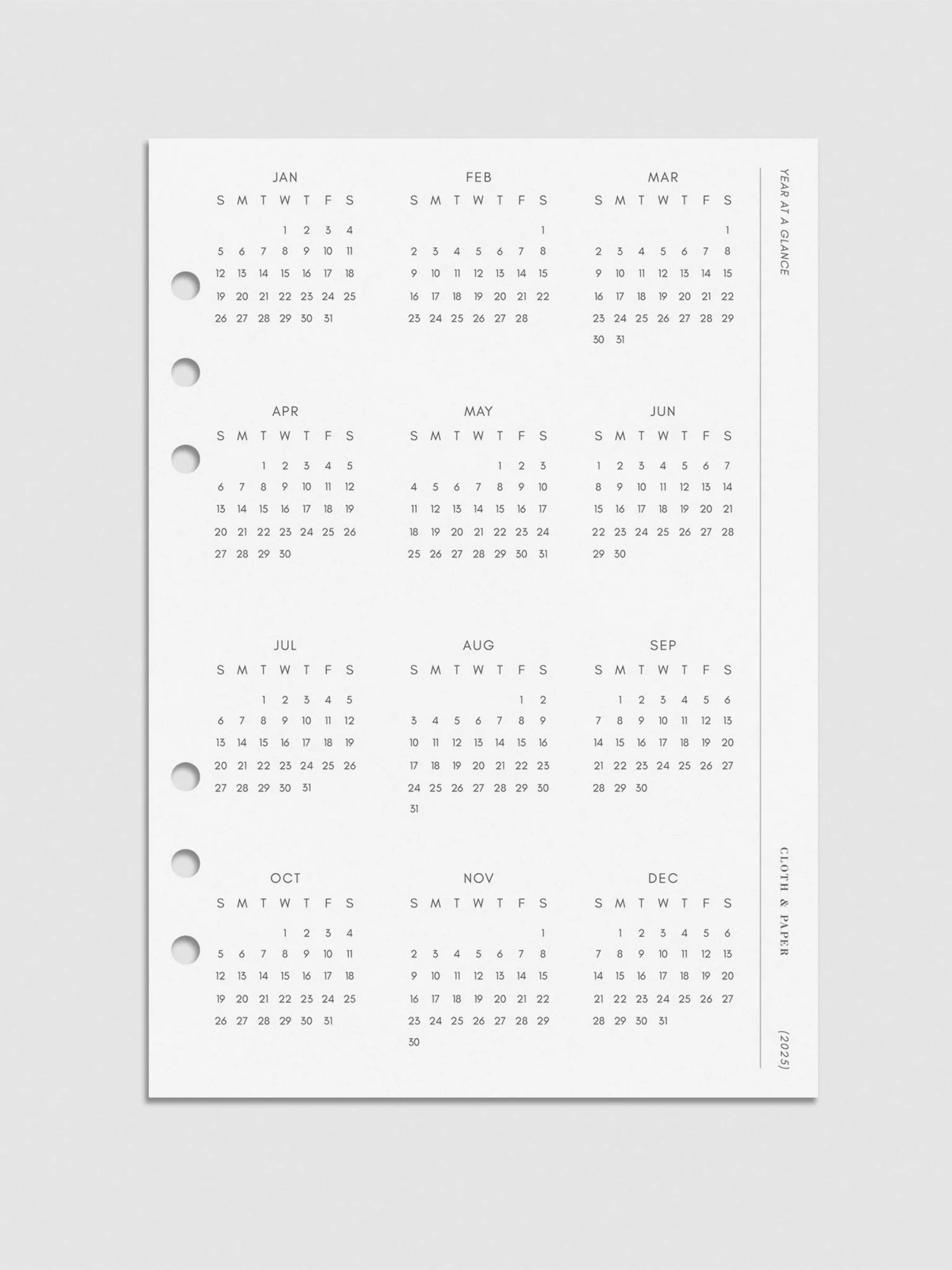 Introducing a dashboard that effortlessly combines simplicity, elegance, and functionality. Our 2025 Year at a Glance Dashboard is a true work of art, providing you with a quick overview of the entire year. With its reference purposes paired with sophisticated charm, this dashboard is ideal for keeping at the front of your planner, inspiring you to make 2025 a year of success and fulfillment.
