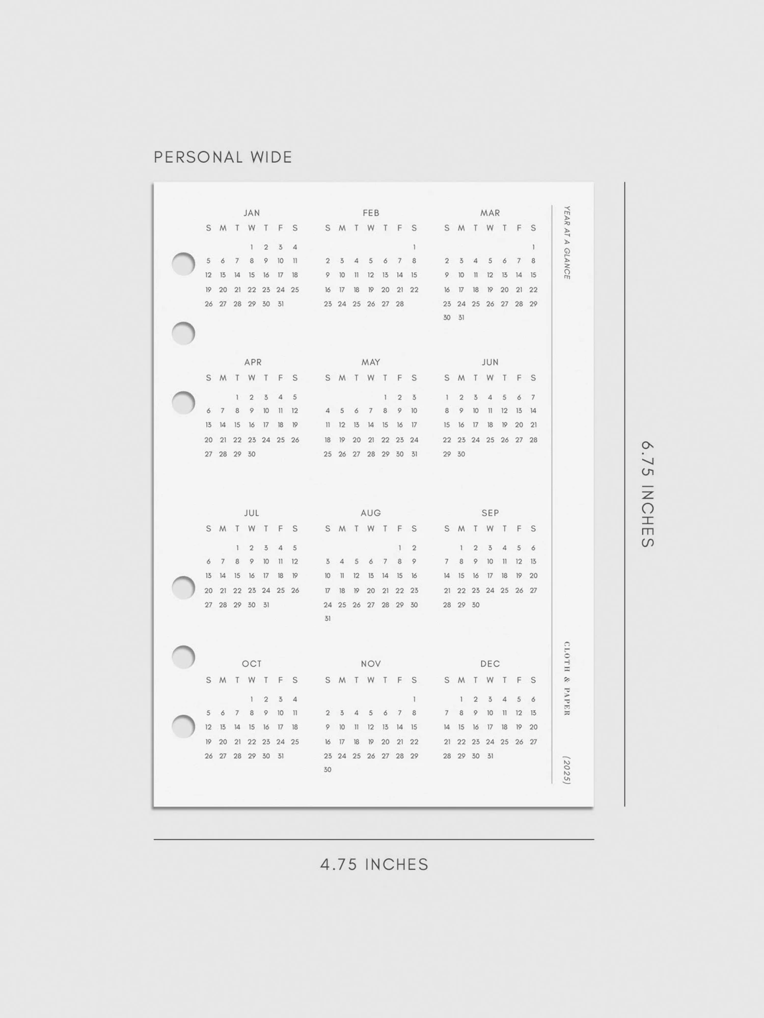 Listing is for 2025 Year At A Glance Planner Dashboard only.