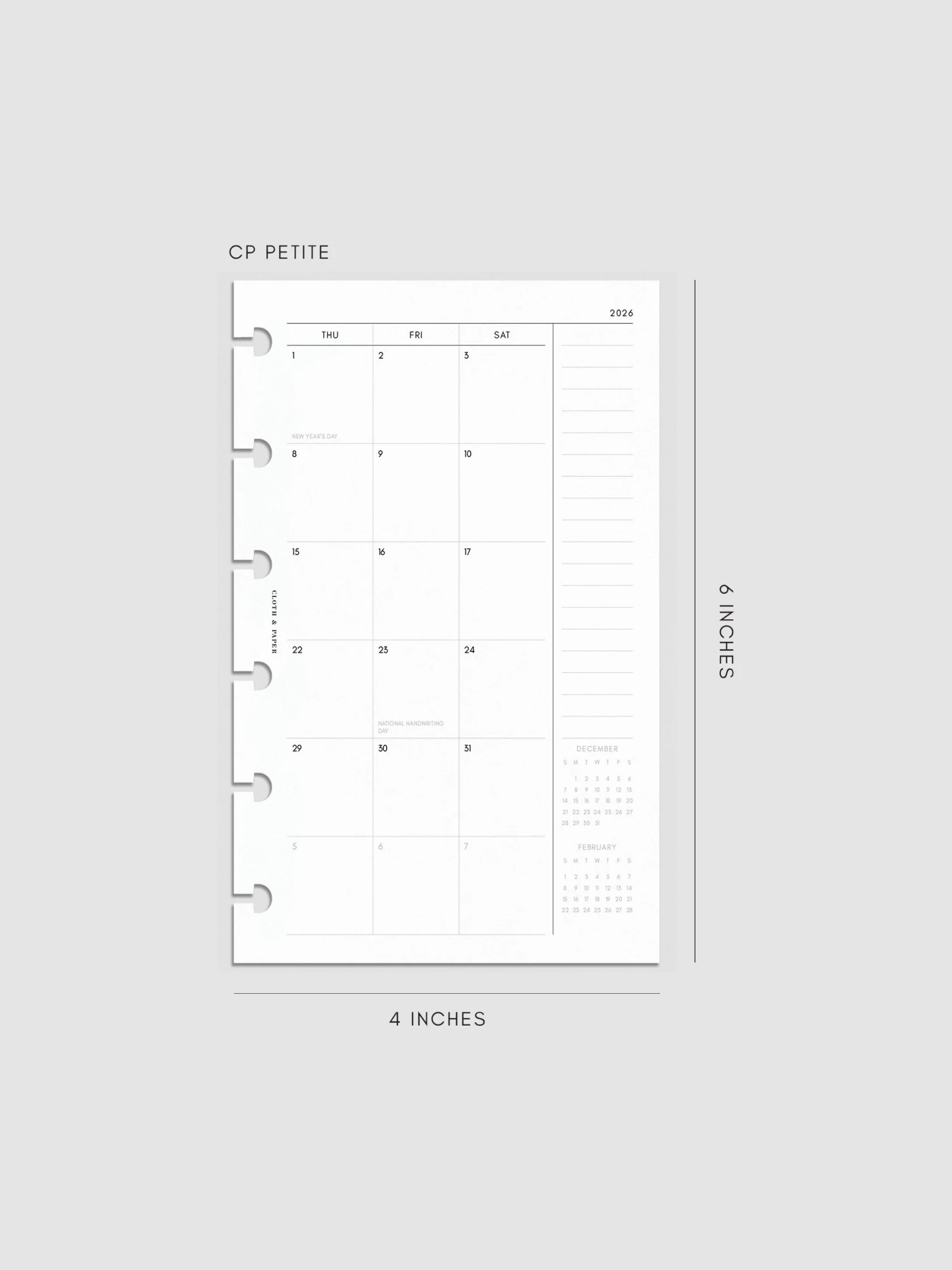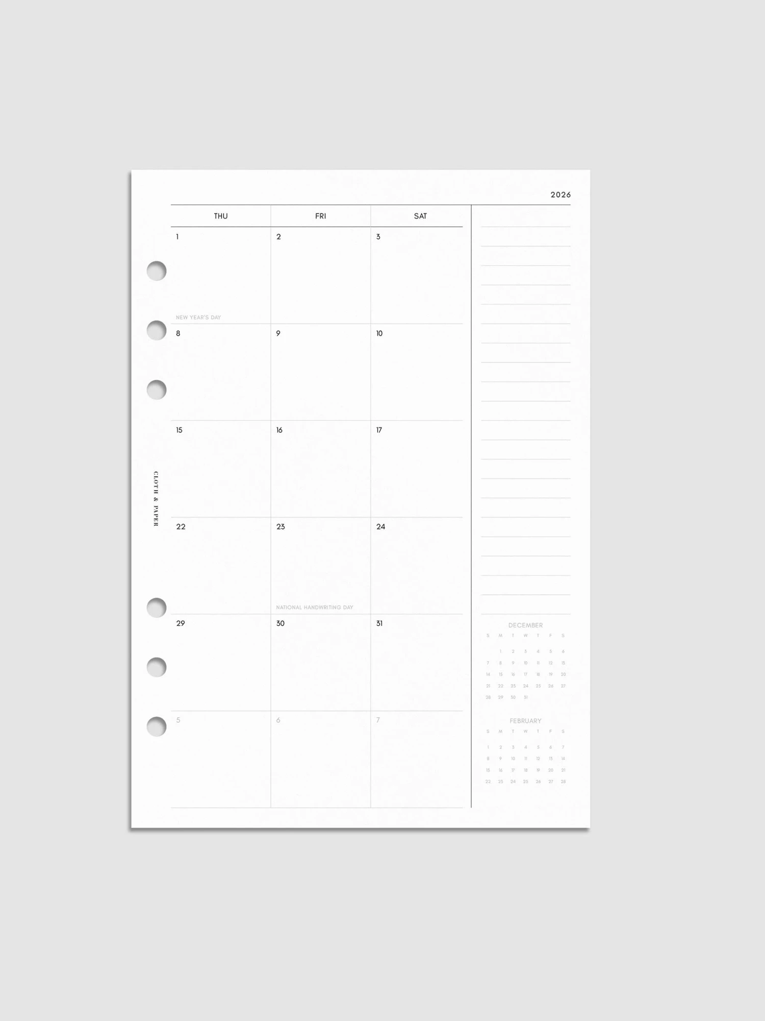 With a clean layout that allows your plans to shine, our 2026 Dated Monthly Planner Inserts are designed so that you can take control of your schedule and plan for the best year yet. This year’s insert has been transformed into a generous planning canvas, featuring spacious calendar squares and extra notes pages.