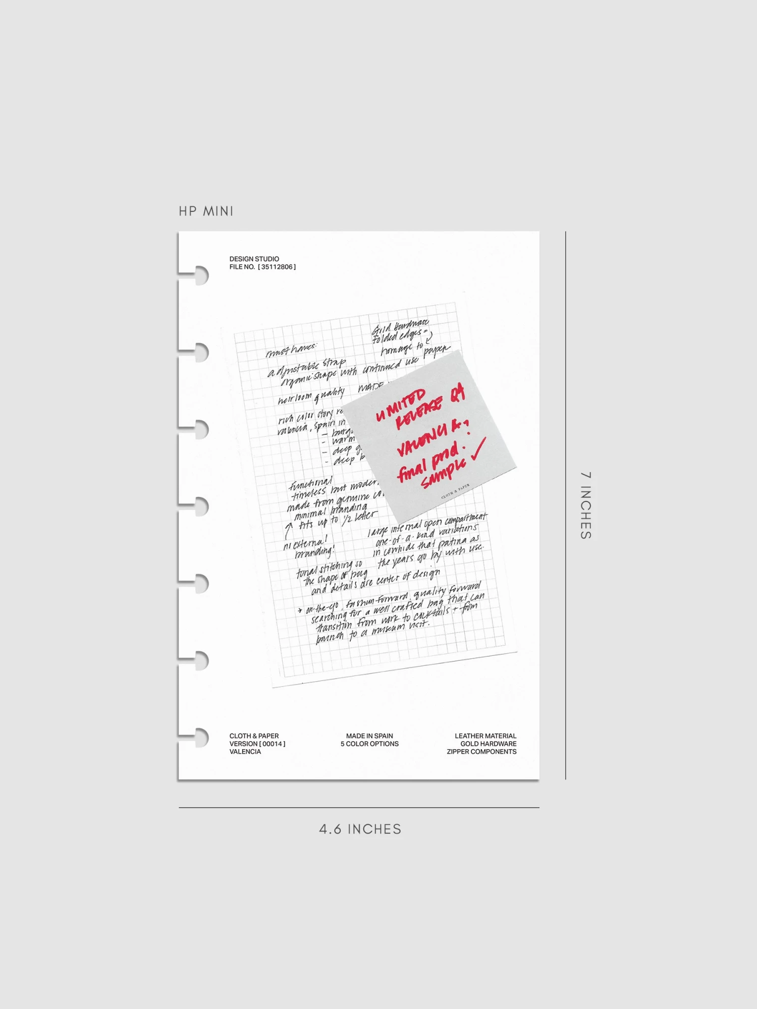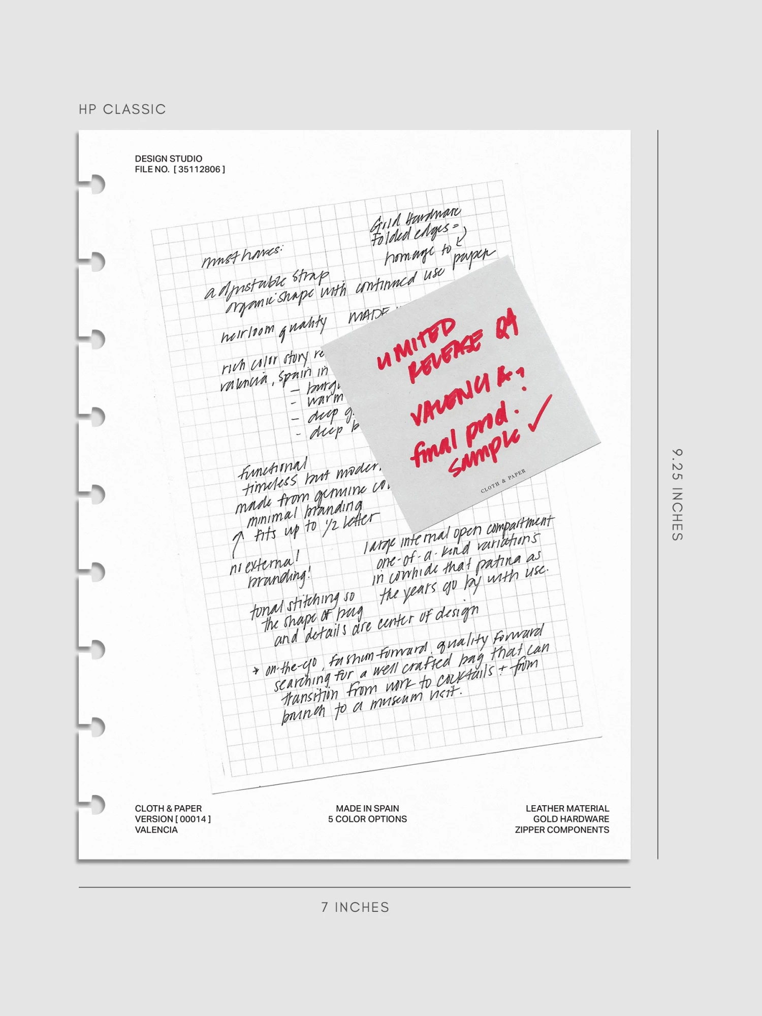 - Thick white cardstock printed with design process notes and faux sticky note detail