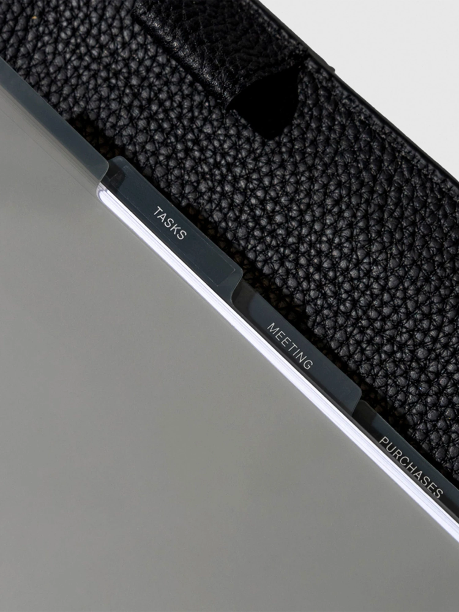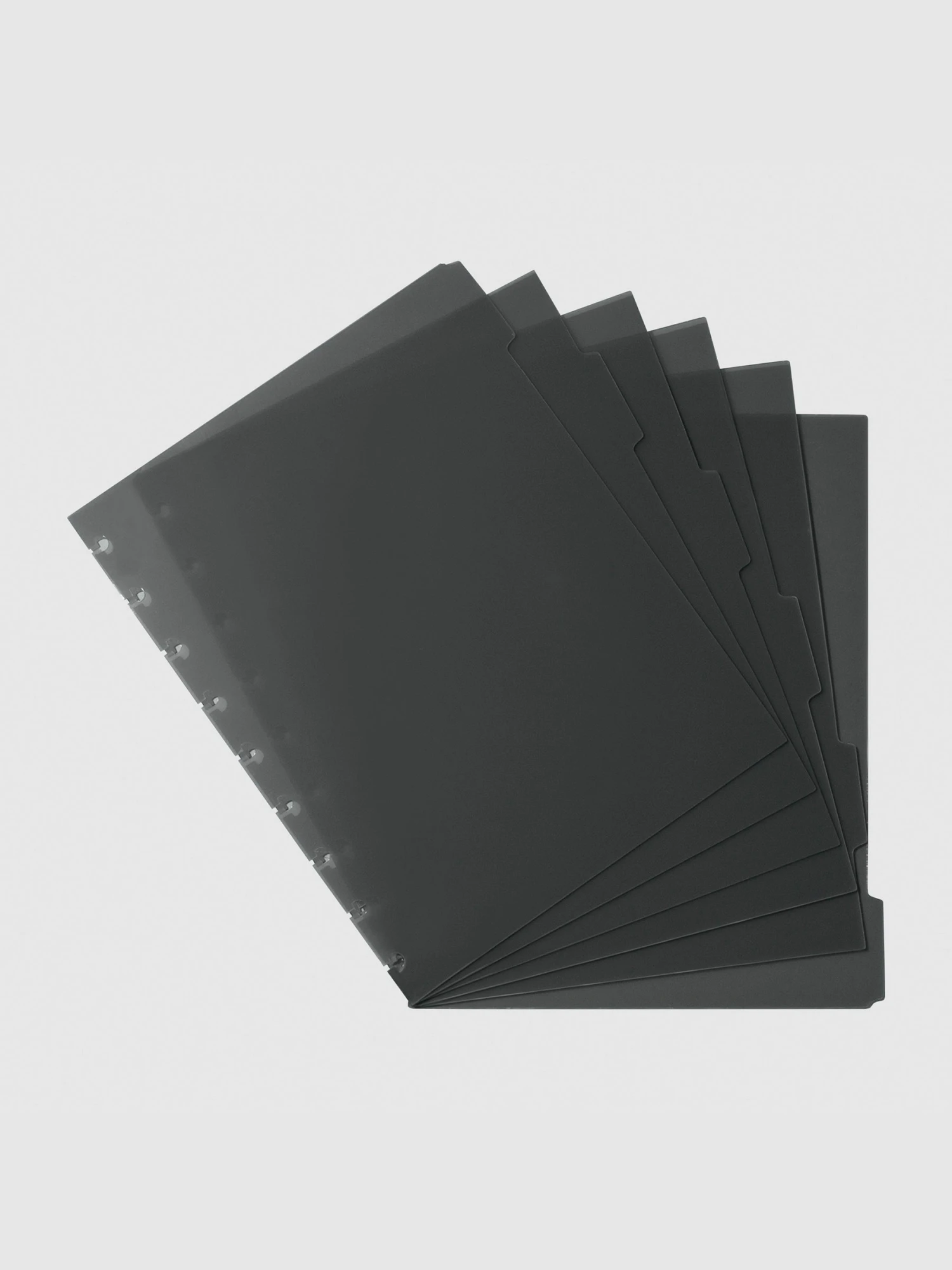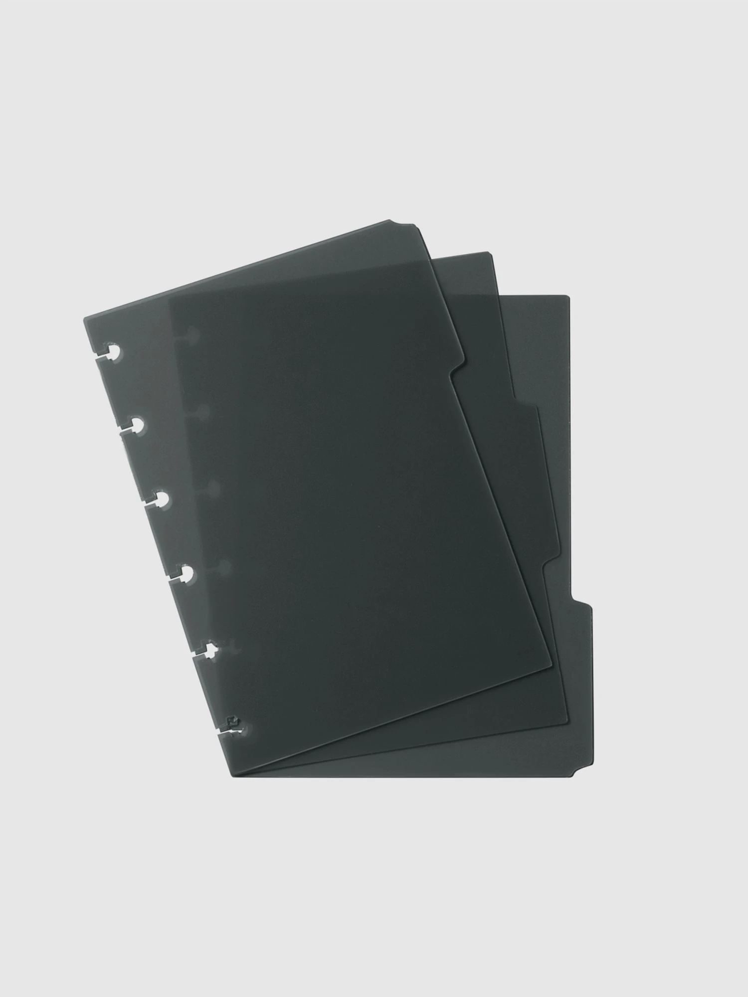 Our Tinted Planner Dividers feature a clear, gray tinted look. Crafted from durable plastic, these dividers are built to withstand daily use while maintaining their pristine look. This gray tint offers a touch of sophistication and privacy without overpowering the aesthetic of your planner. This product arrives with protective film on each side of each divider, which can be removed by hand or with a pair of tweezers.