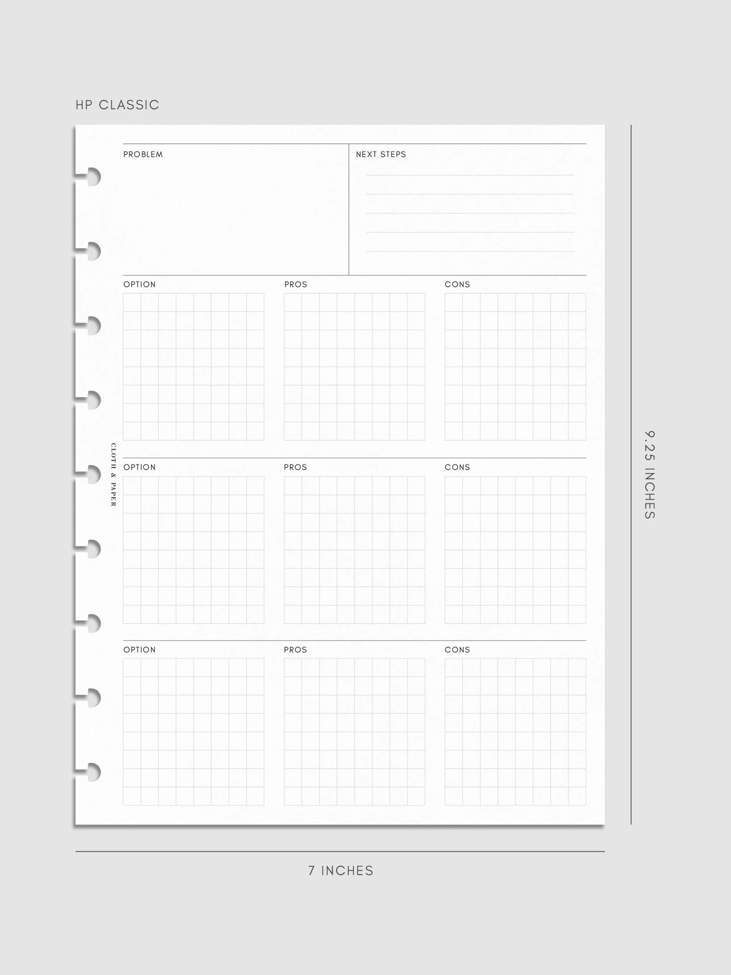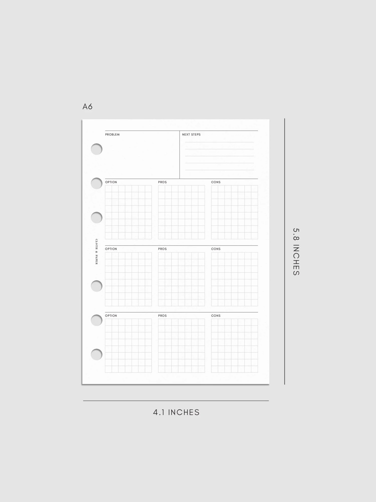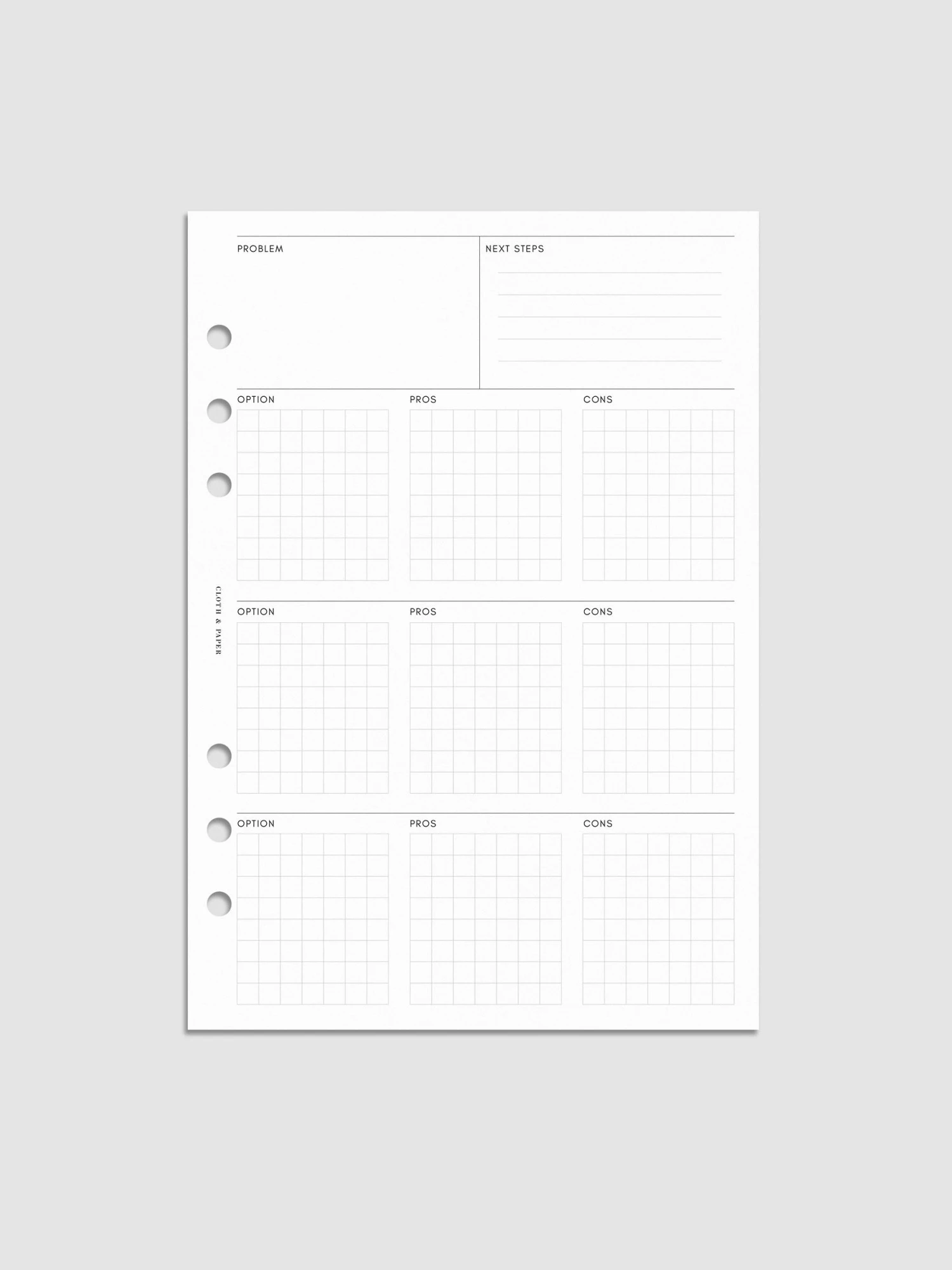 Navigate tough choices with clarity using our Decision Making Planner Inserts. Designed to simplify problem-solving, these inserts guide you through each step of the decision-making process with structured fields for identifying challenges, weighing options, and outlining actionable next steps. Perfect for business planning, personal projects, or everyday decisions, these pages help you think critically and confidently before moving forward.