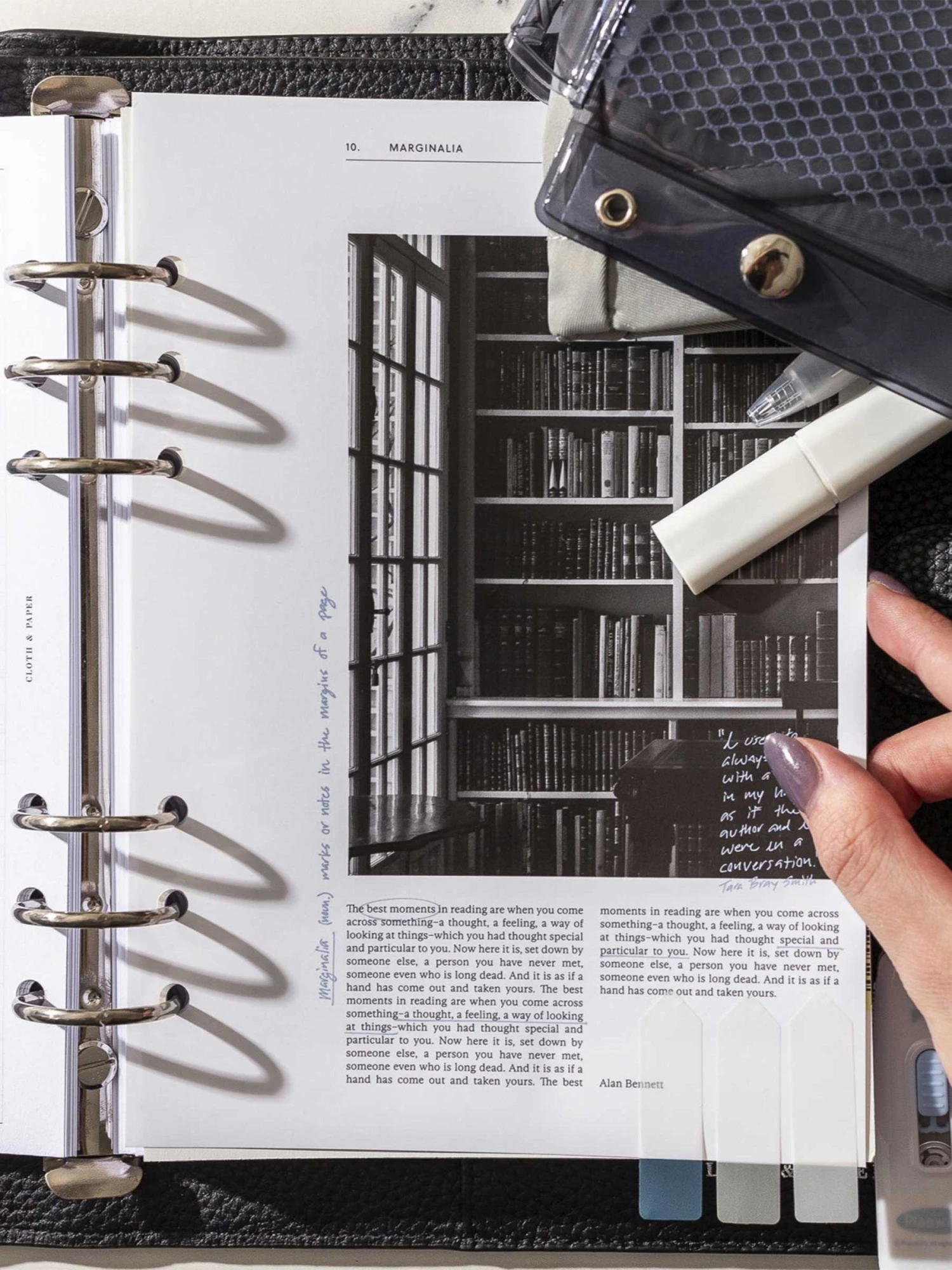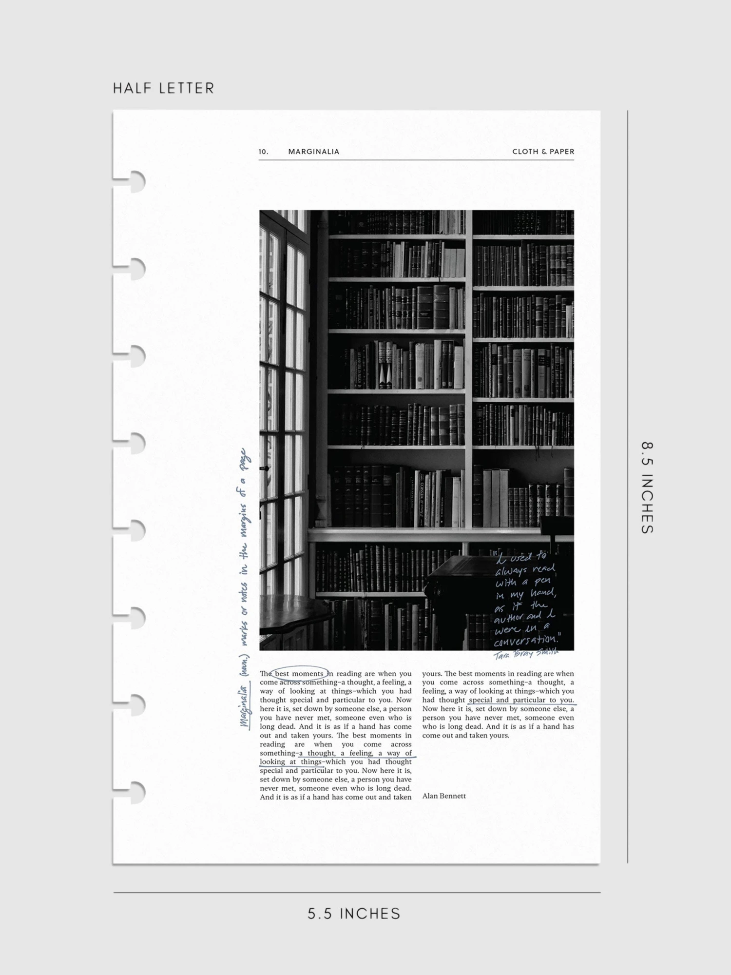 Blending form and feeling, the design incorporates excerpts from Alan Bennett and Tara Bray Smith, capturing the sense of discovery and conversation that unfolds between a reader and a beloved text. A tactile companion for your planner, this piece invites you to slow down, reflect, and write your own story.