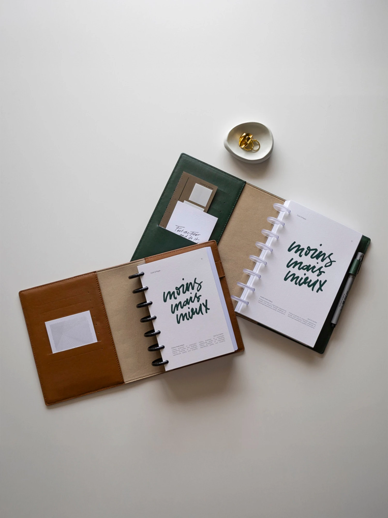 Listing is for one Moins Mais Mieux Planner Dashboard only, other pictured items not included.
