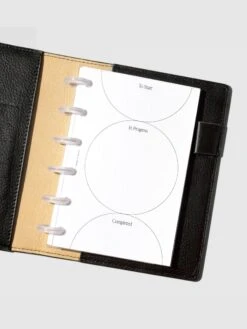 - Sections: 6 tabbed divider sections, each starting with a Chapter page featuring a title area, notes, and an inspirational quote