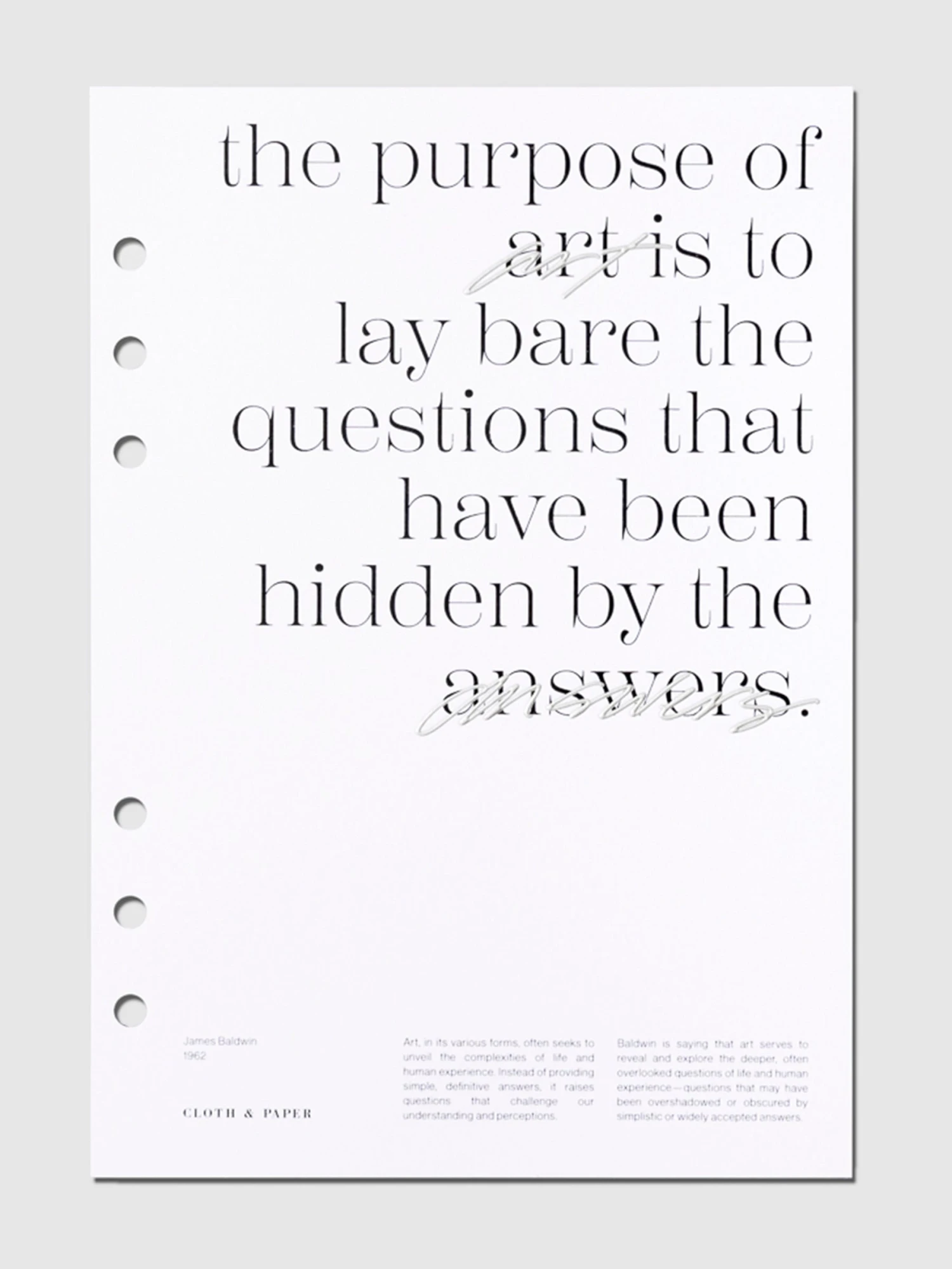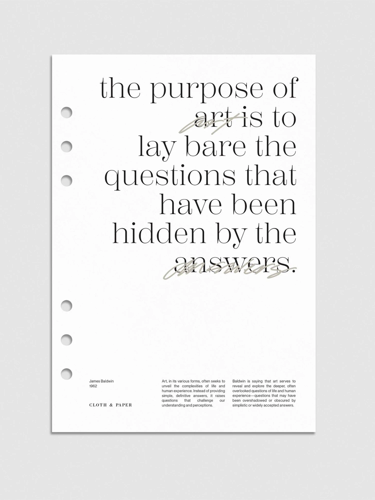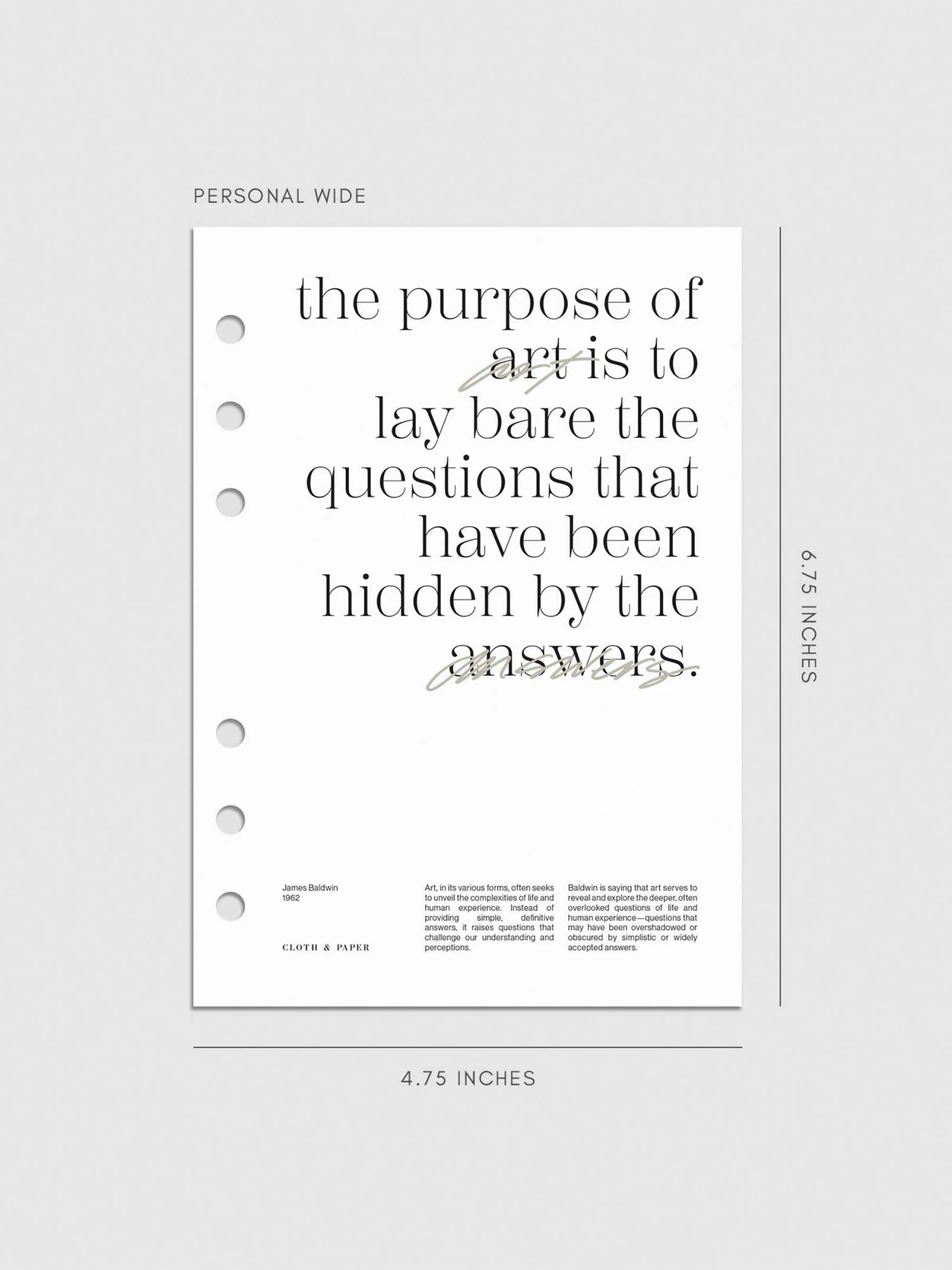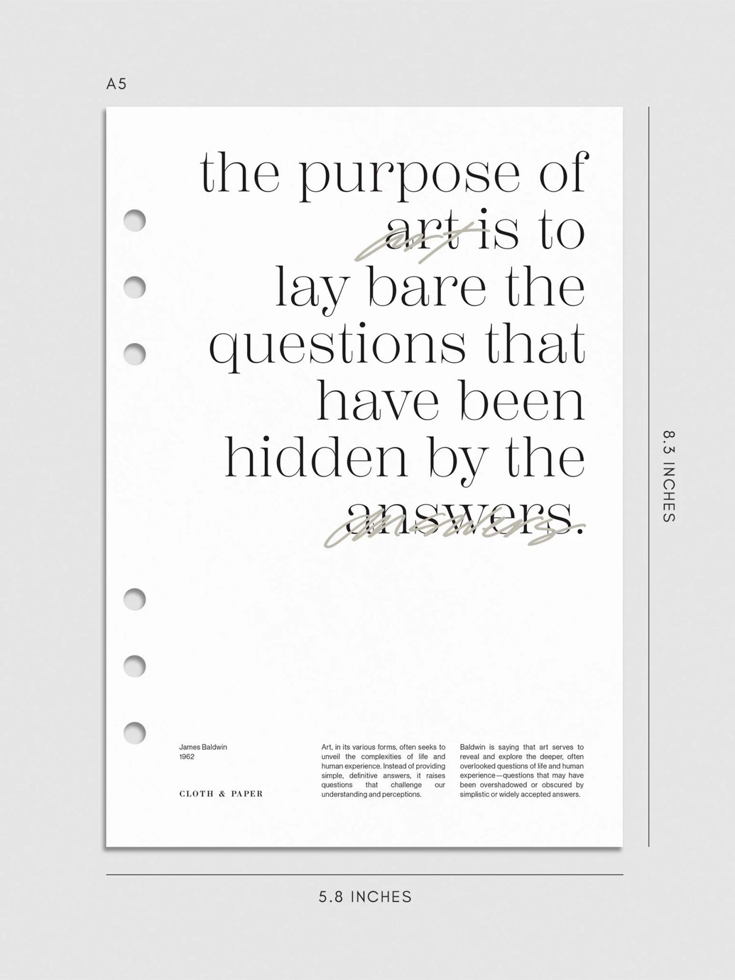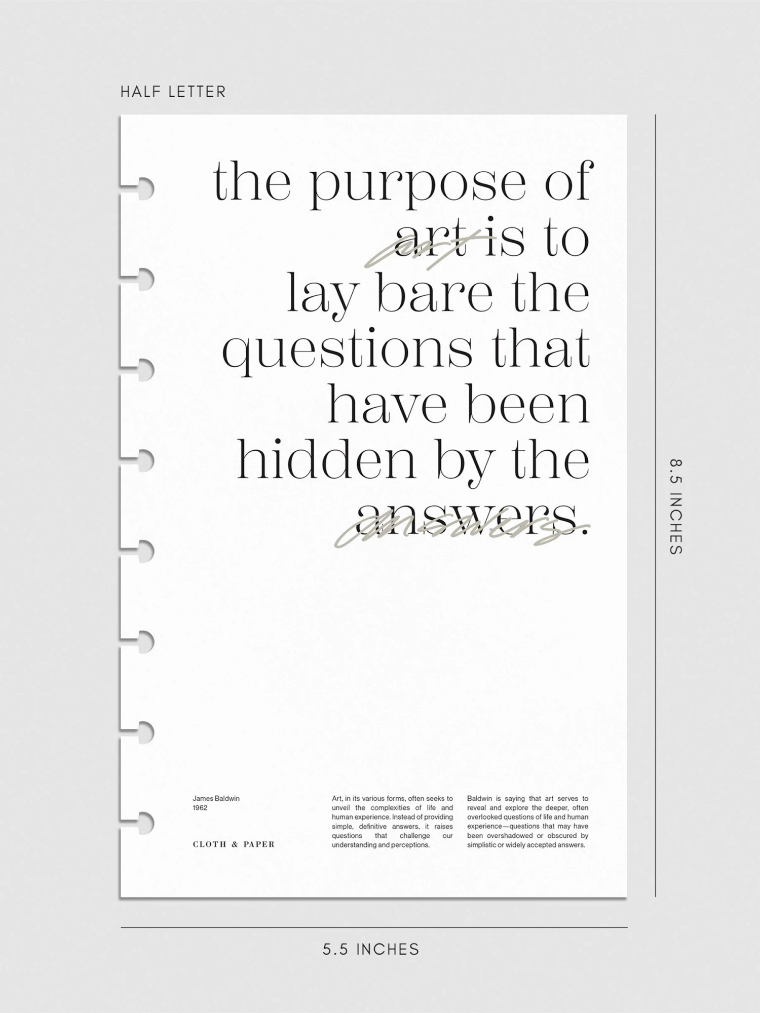 Drawing inspiration from the timeless wisdom of James Baldwin, this dashboard features an inspirational quote that serves as a daily reminder to seek purpose and passion in everything you do. Its spot gloss printing offers a tactile and visually striking element that sets this planner apart.